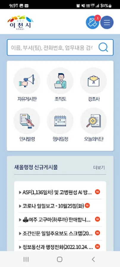 You can search for Icheon-si employee information, quickly support phone and video calls with a powerful call connection function, and make a quick and simple call.