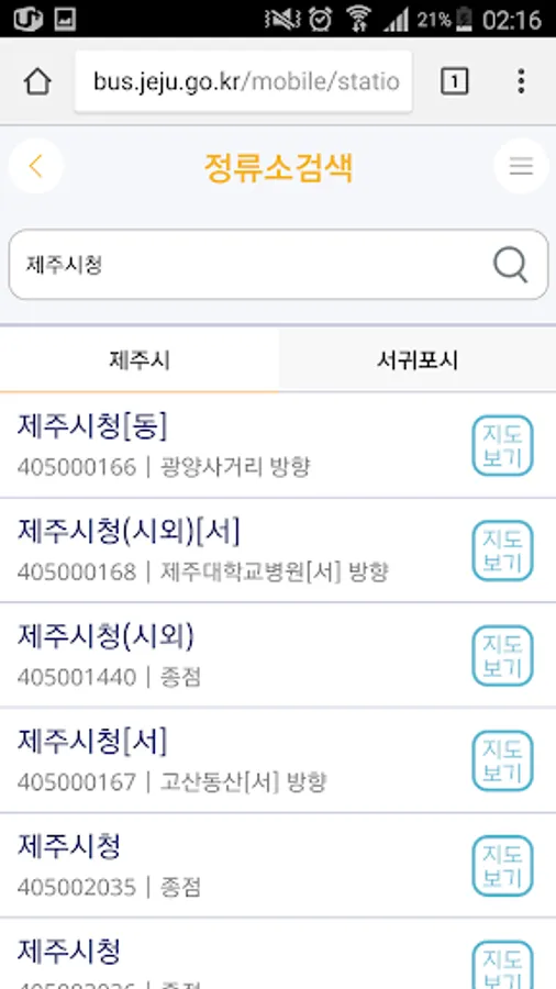 또한 사용자의 현재 위치에 기반하여 주변에 있는 정류소를 검색하실 수 있습니다.