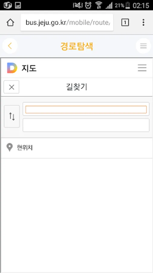 4.경로검색 : 출발/도착 버스정류소를 지정하여 검색하면 다음지도와 연계되어 경로검색 결과를 보여줍니다.