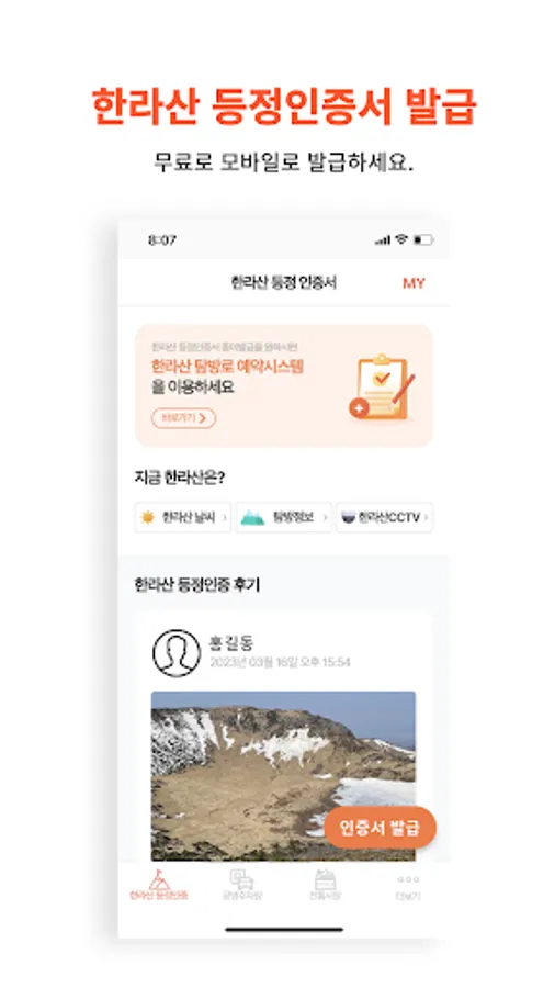 Issue the Hallasan mountain climbing certificate to mobile with JEJU IoT (Jeju IoT).
