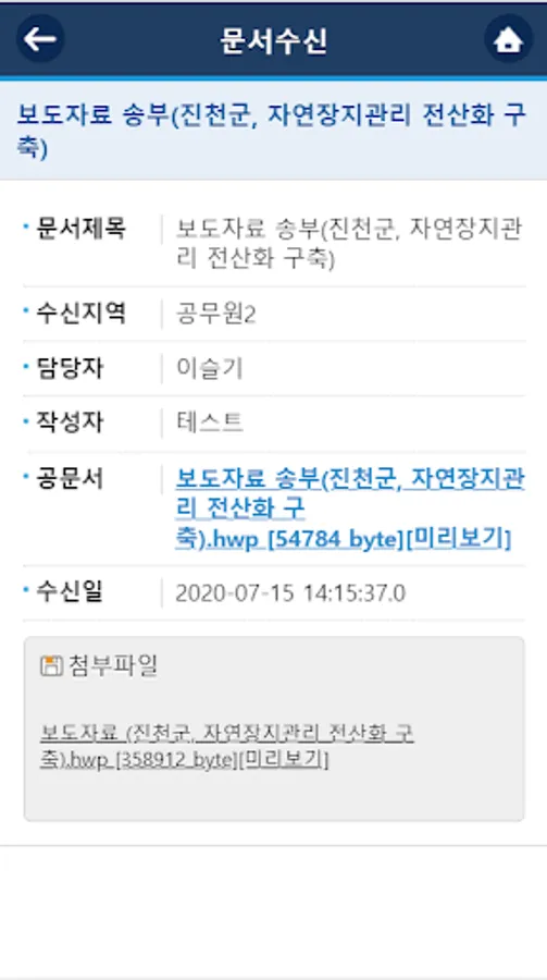 - 각 읍면 또는 리로 알림 및 첨부파일들을 확인할 수 있습니다.