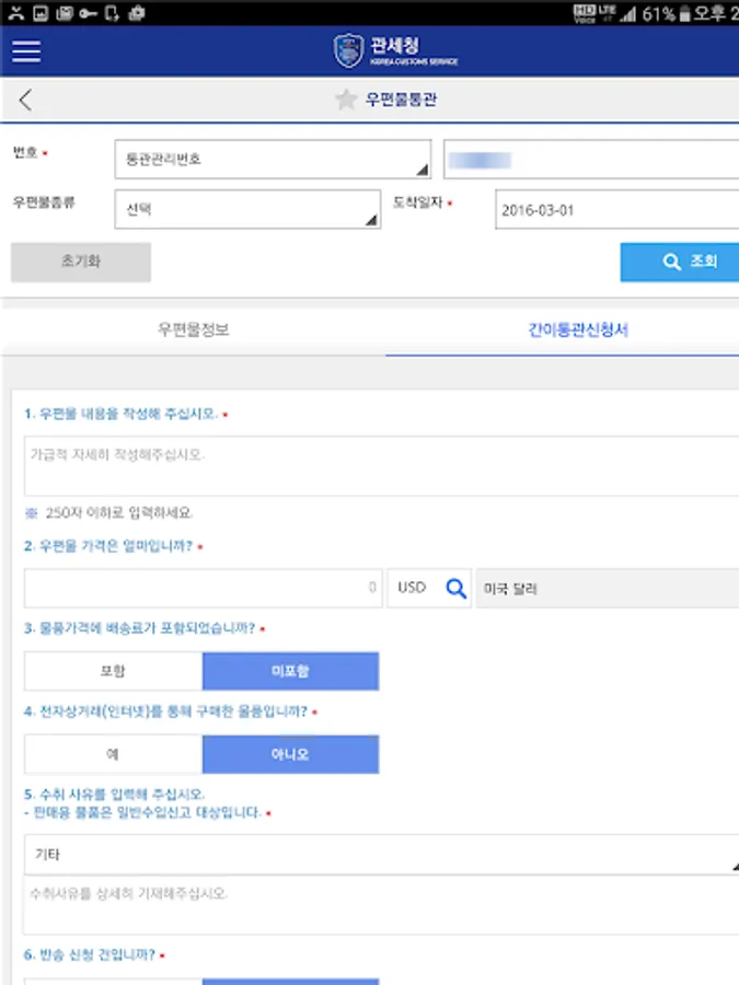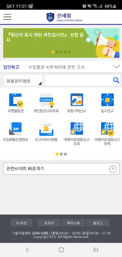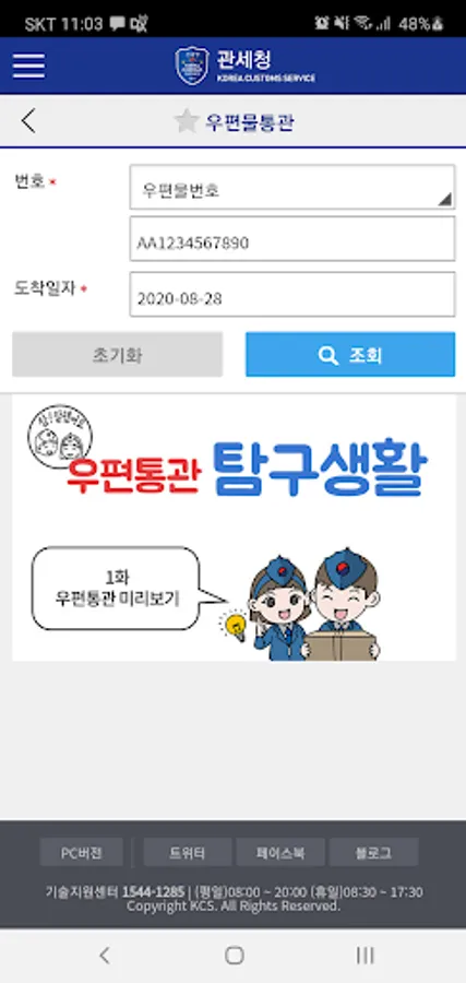 Customs mobile app provides custom integration services to ensure that once the useful content (home, Internet portals Customs UNI-PASS) of the services provided by the Customs Service.