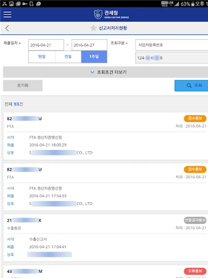 - Import-export correcting history, Traders error status, payment history, outstanding history, such as manifested correction history
