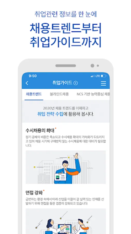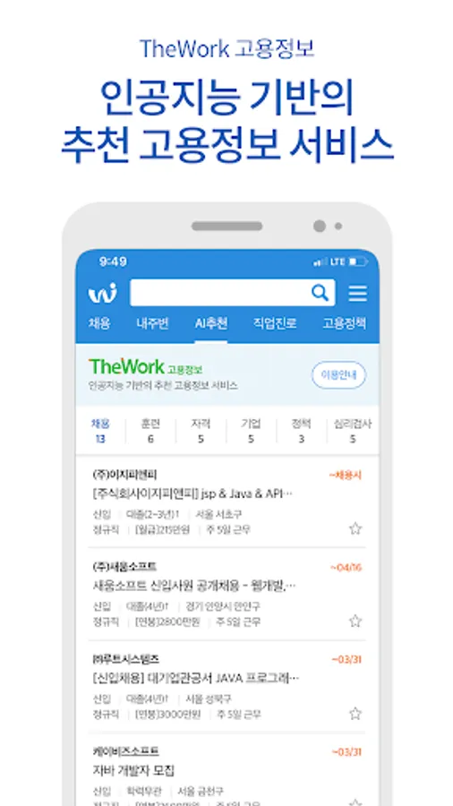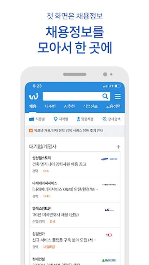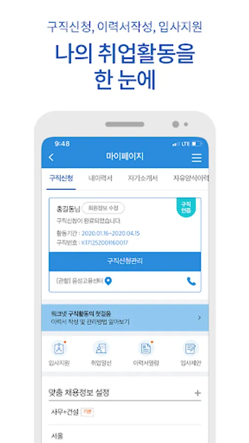9. Provides a widget that allows you to check the status of customized employment information and job search activities on the smartphone screen