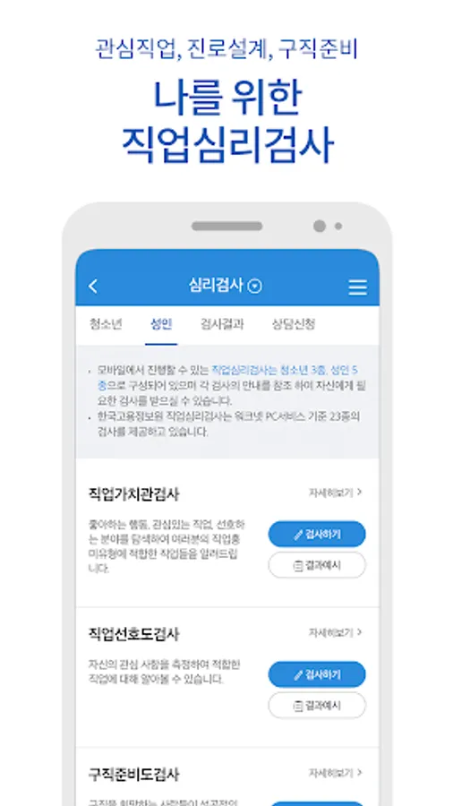 - Provides job psychological examination and counseling function for adolescents, adults, and college students
