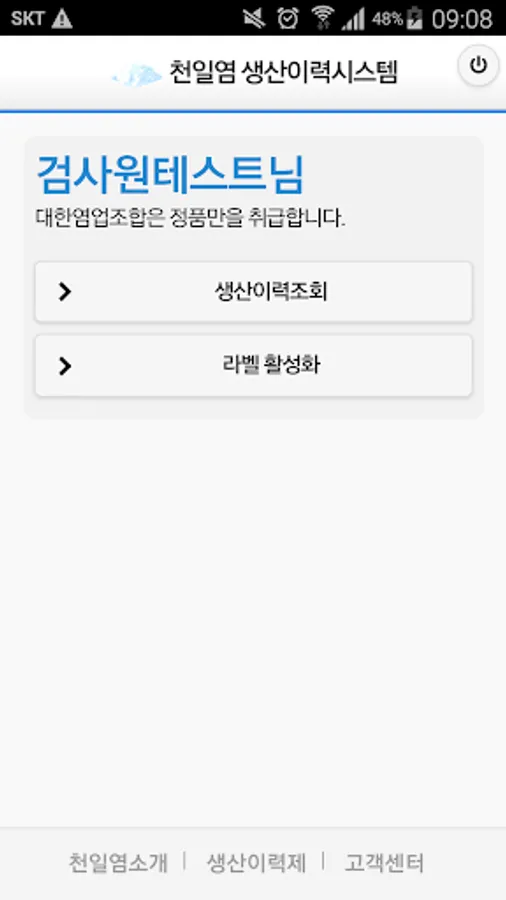 천일염 이력관리제 검사자용 앱입니다. 검사자만 로그인이 가능하니 일반 사용자는 "천일염 생산이력 조회"앱을 받아서 사용하시기 바랍니다. 관련 URL은 아래와 같습니다.