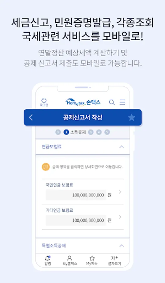 Business registration status inquiry, electronic tax invoice issuance, cash receipt inquiry, year-end settlement simplified data inquiry, deduction report, estimated tax amount calculation, electronic notice, etc.