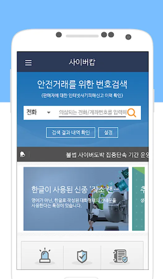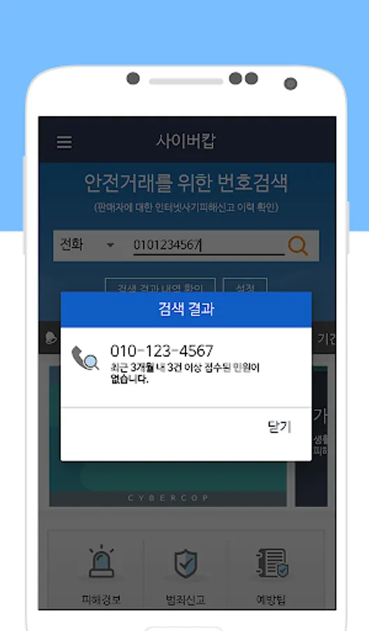 사기로 신고 접수된 번호인지 검색 기능 제공