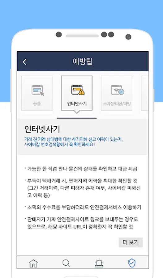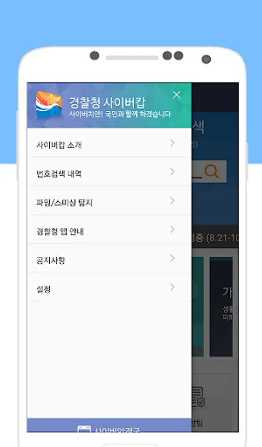 - 사이버 범죄 신고/상담 사이트 연결 기능 제공