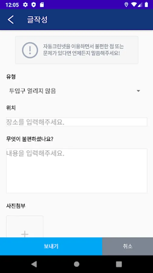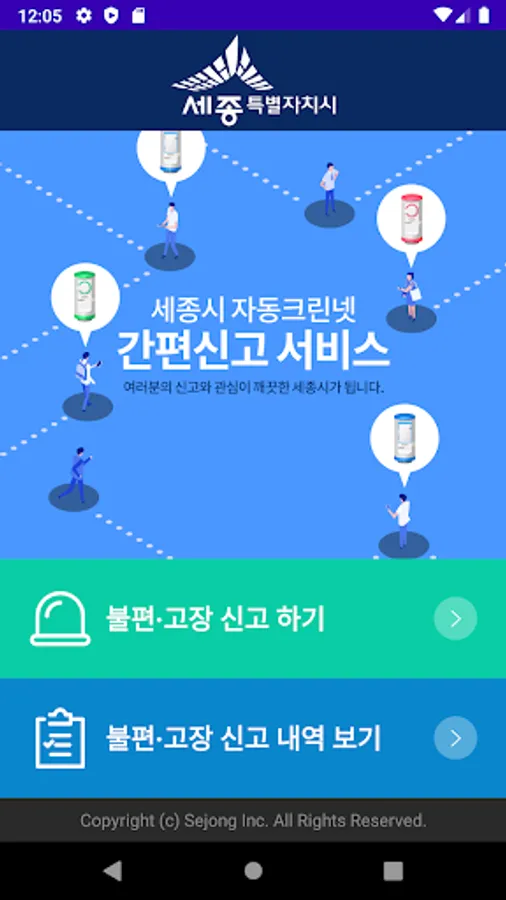When using the automatic clean net inlet installed in the 6-3,4 Sejong living area, citizens can use the simple report (breakdown, damage, etc.) function directly using the mobile device.