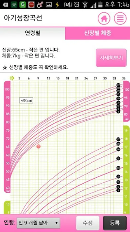 The height and weight information depending on the age of the children can be compared to a standard growth curve of the age.
