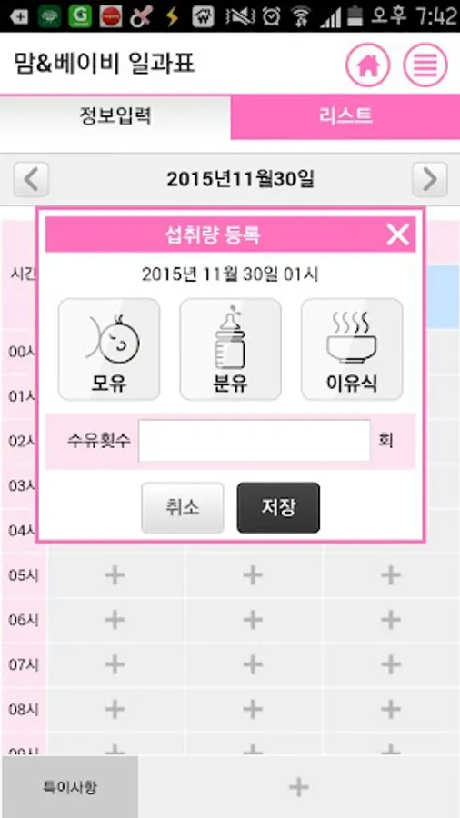 Feeding of infants during the day, you can manage records feces, sumyeonryang and uniqueness.
