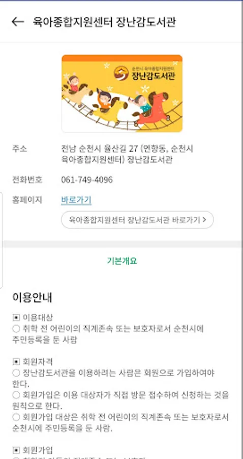 - 보육시설 : 육아종합지원센터 장난감도서관, 희망장난감도서관, 아이사랑장난감도서관