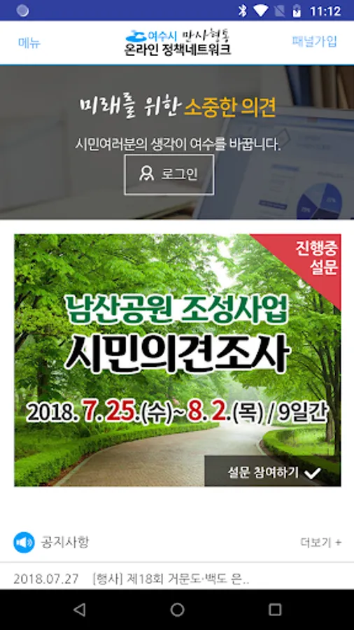 Building operates the Square Yeosu citizens communicate online survey "to listen to the voice of the citizens, and faster and more broadly understand the need for consumer policy