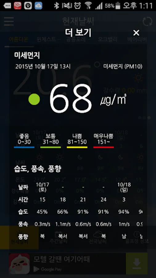 ◆ 미세번지, 풍속, 풍향 정보도 제공되며, 위성사진, 레이더 영상, 기상특보를 이용하여 날씨 변화를 손쉽게