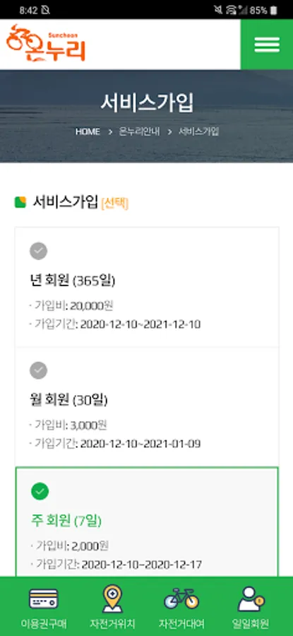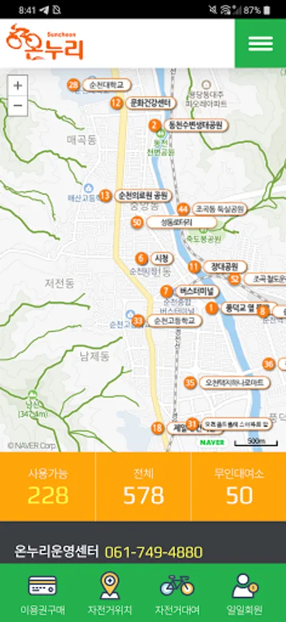 Suncheon Onnuri public bicycle user app operated by Suncheon City.