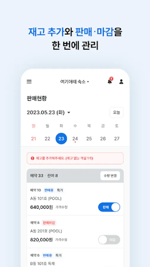 - Sales settings: You can manage sales products such as room closing, quantity change, and price change.