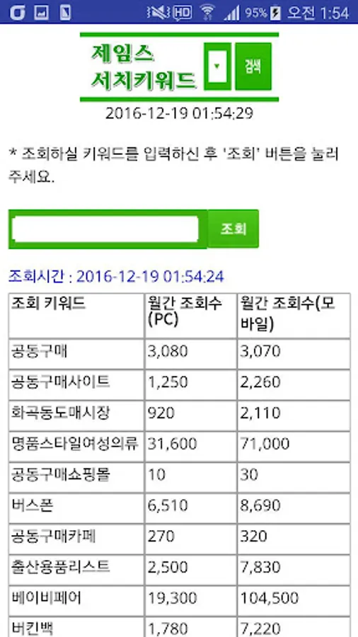 The monthly number of search - number of times the search for a keyword in the last month four N user PC and mobile using.