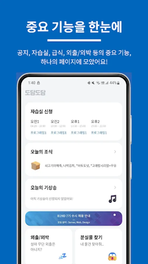 By using the Dodam Dodam application, students can comfortably use the services provided by the school through mobile.