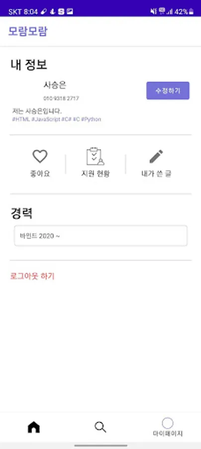 Moram Moram is a team building app for writing at Daegu Software Meister High School.
