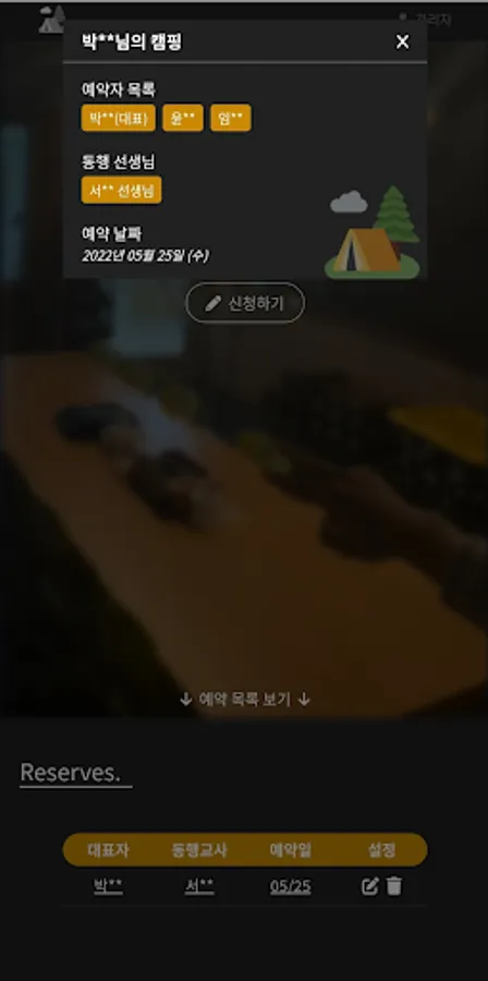 School camping reservations quickly and easily, School Camping is an application for booking Gyeongbuk Software High School School Camping.