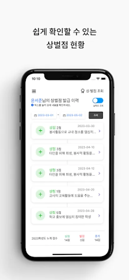 If you log in after accessing the green mileage or dormitory reward/penalty point system, students can check the issuance status of their reward/penalty points, and teachers can issue reward/penalty points.