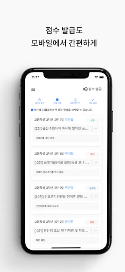 Students can easily check individual reward and penalty point information, and can issue reward and penalty points.