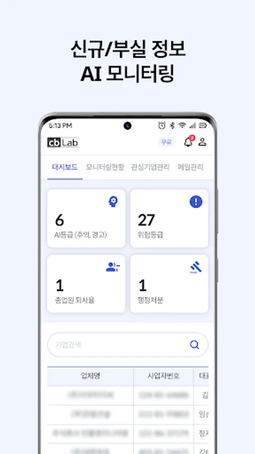 * Customer monitoring Real-time notification of new/insolvent information when registering companies of interest Provision of predictive monitoring based on reliable AI data