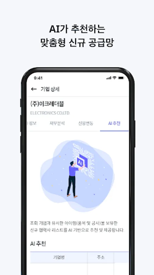 ∙ Recommendation of optimal new supplier candidates verified by AI such as reference, credit, and region