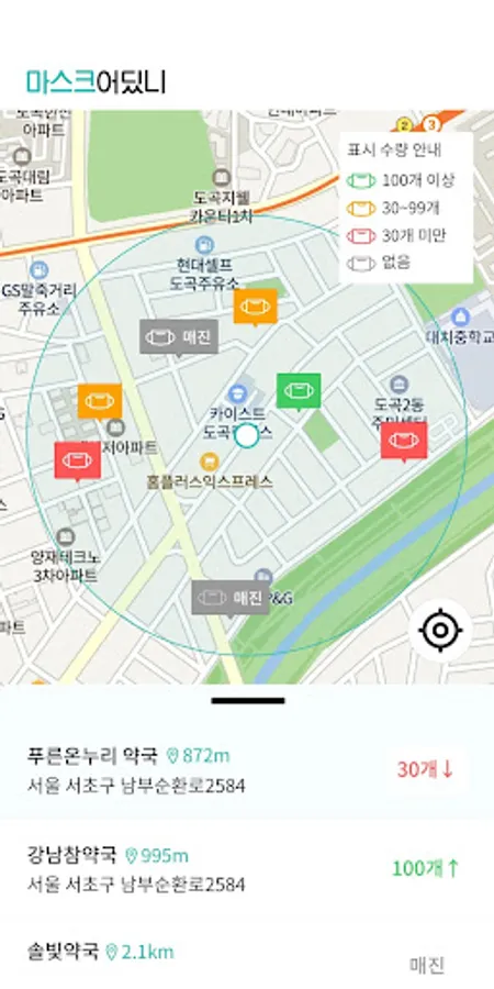 You can check the nearest public mask sales pharmacy information based on your current location.