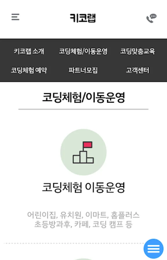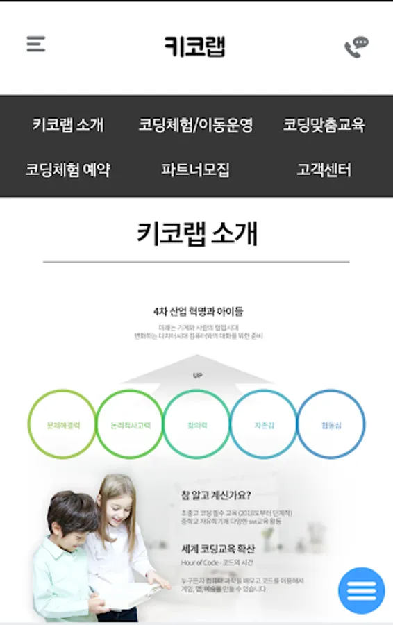 Kiko Lab provides coding experience mobile operation, coding tailored education, and coding experience reservation service, and aims to provide education for problem solving skills, logical thinking skills, creativity, self-esteem, and cooperation in preparation for the 4th industrial revolution.