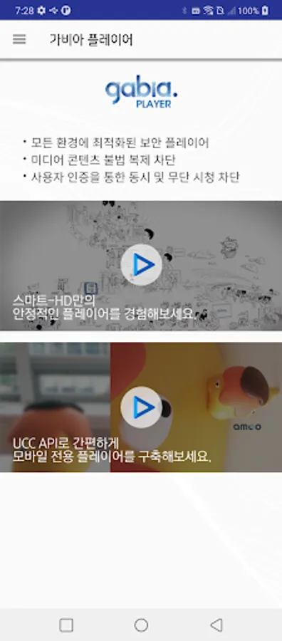 Gavia Player is a mobile-only security player that blocks illegal copying and downloads to prevent content leakage. You can protect copyrights by blocking simultaneous and unauthorized viewing through user authentication.