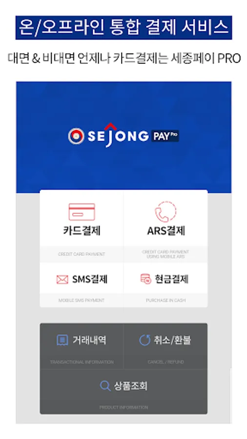 -You can easily receive card payment through Sejong Pay APP, WEB, and API.