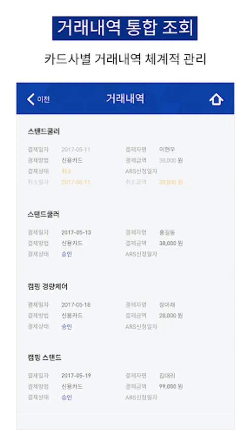 -You can check detailed card payment details through inquiry by transaction type and period.