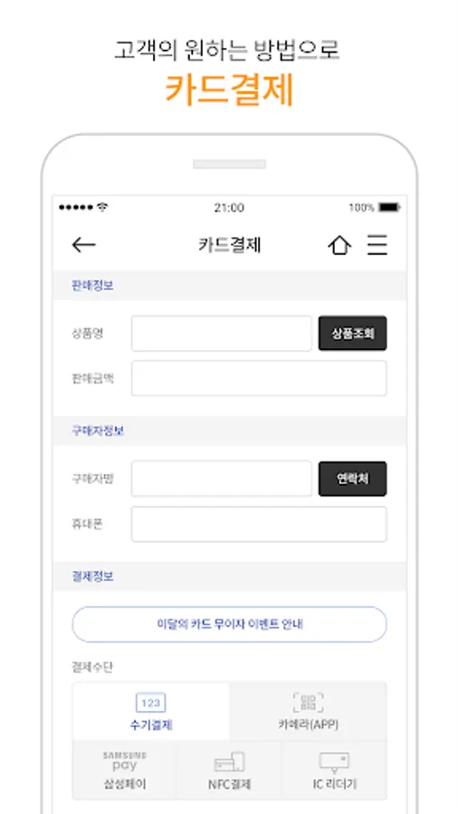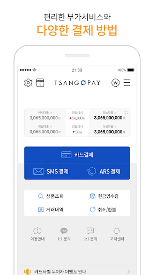 - Instant credit card payment by manually entering the customer's card information on the T-SangPay app screen