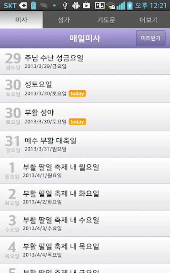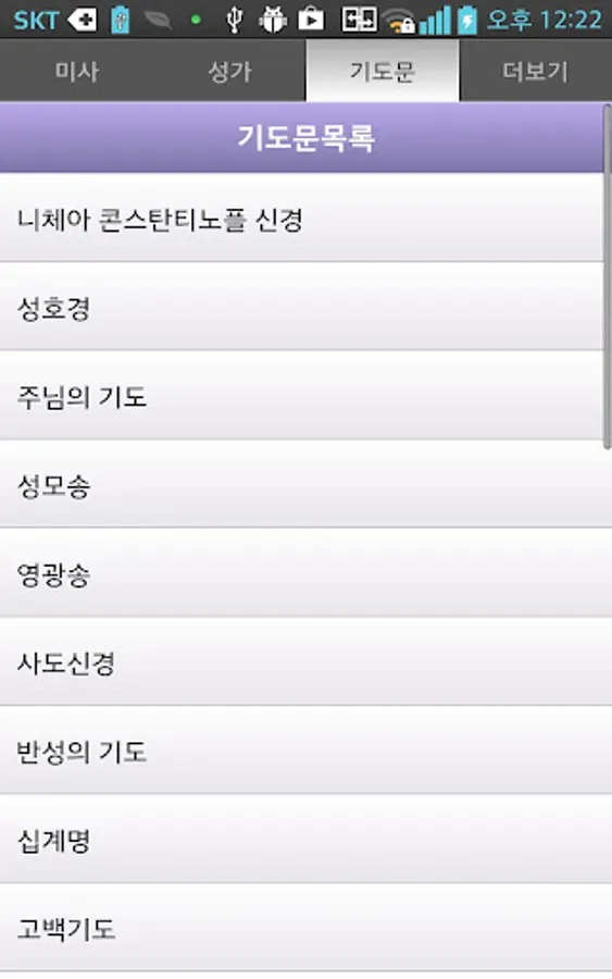 This is a tab where you can see 24 built-in prayers. You can choose the prayer in m.catholic.or.kr instead of the built-in default prayer in the form of prayer in the setting menu.