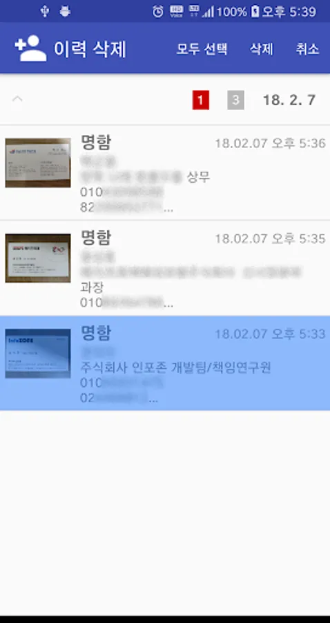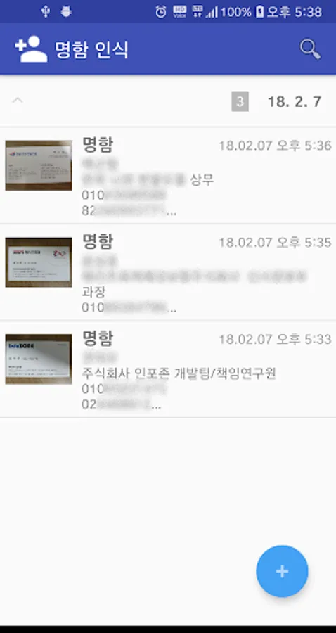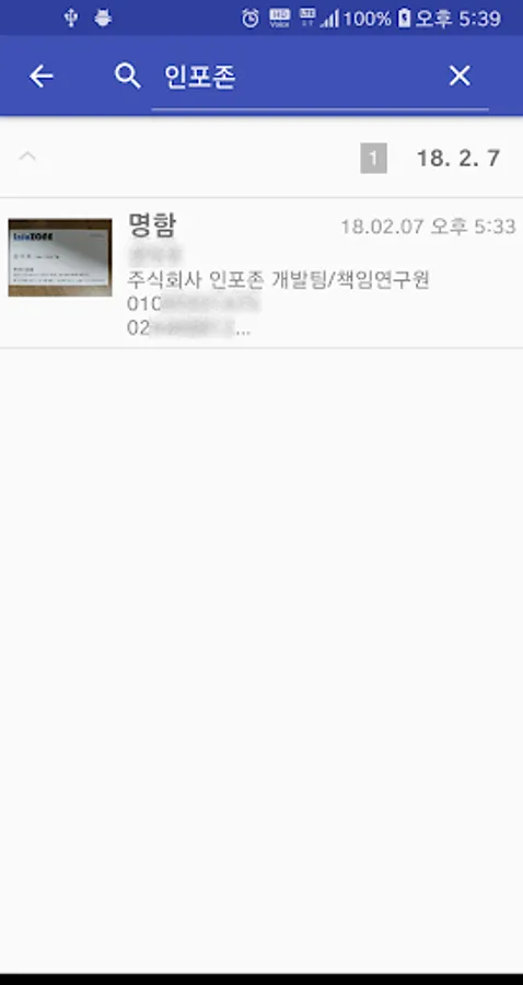 - By entering the keyword you are looking for, you can search the recognition history and find the business card easily.