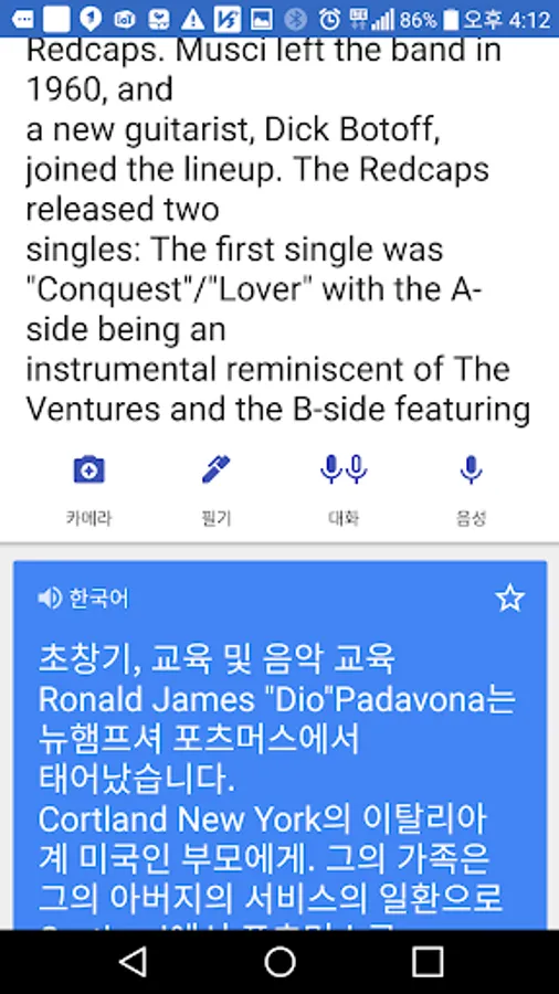 - Recognition history allows you to check previously recognized pictures and text.