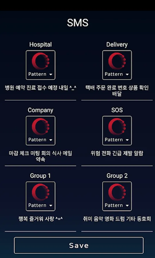 2. SMS: Tells you which message came. You can edit and edit the message text that you want to be notified in each category (hospital, shipping, company, emergency, custom, etc.).