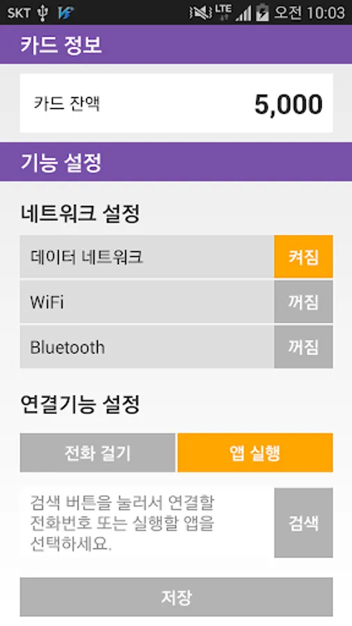 Dusimyeon set the desired function via the process, turn off the feature set using a transportation card networks (data networks, Bluetooth, WiFi) drive the app, or you can make a call.
