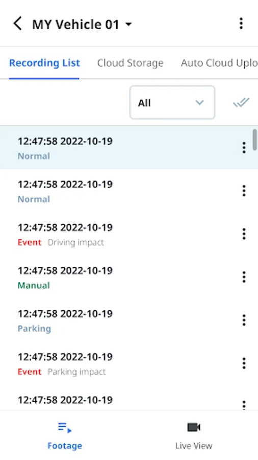 • Auto Cloud Backup: Automatically upload Event files from the dash cam to the Cloud storage so that your evidence is safe in case of SD card damage or theft