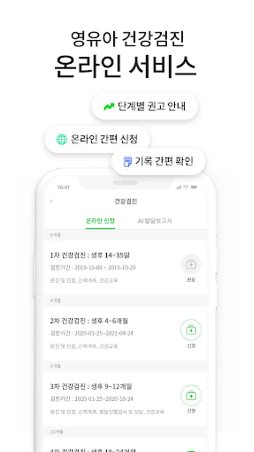 Meet infant health checkups, development checks, and games tailored to each age of your baby from 0-36 months.