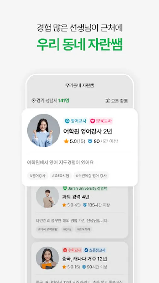 - From English, math, science, Korean, and entertainment to school, babysitter, and childcare, you can easily apply for a variety of tags at a glance.