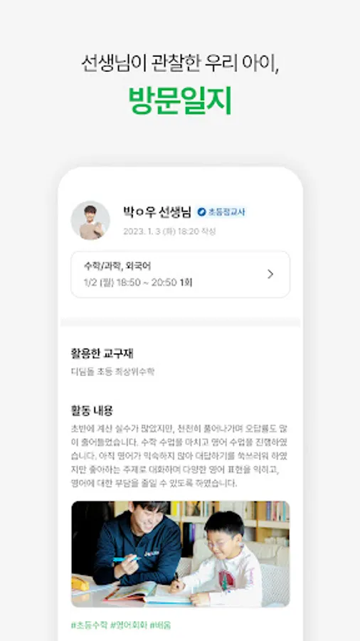 - You can receive your child's own visit diary containing the time spent with the teacher.