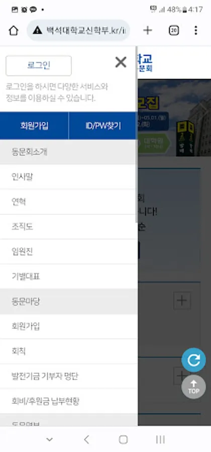 Now, Baek Seok-in will reorganize the organization of the alumni association and take a step toward becoming an alumni association that achieves a certain level of performance through steady efforts. In addition, the alumni association’s 『personal log maintenance』 and 『the history of the general alumni association』 were organized, and the days of 『meeting of alumni and current students』 and 『meeting of alumni and alumni』 were made more solid, making efforts to create a foundation that would have a spiritual influence throughout Korea. I'll do it. We will look closely at the improvement of the alumni association's finances through accounting transparency, the admission of alumni to the alumni association, and the problems of Aekyung Temple. In addition, we will work hard to promote the establishment of a scholarship foundation for the Department of Theology in the long term by gathering the will of our alumni.