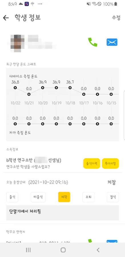 This is a face recognition system that can respond to non-face-to-face quarantine rules. It measures body temperature at the same time as attendance is checked and data is automatically saved, and the student's body temperature is recorded for the last two weeks.