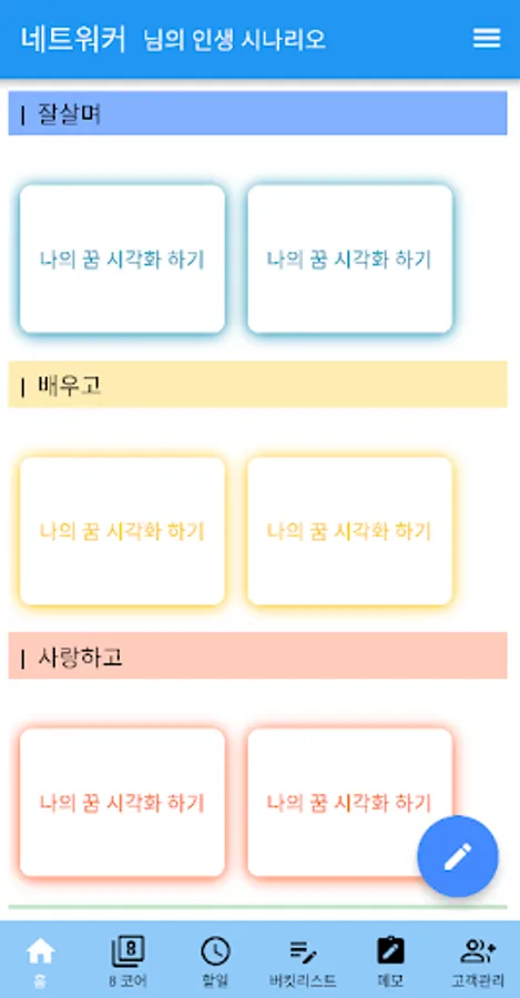 Dream visualization, 8 cores, to-dos, bucket lists, memos, and customer management can be managed with Korean applications.