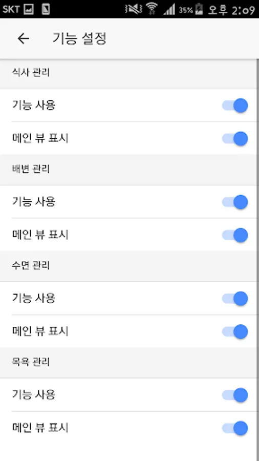 - Set the activation set and the visibility at the main Home screen accordingly of the features provided in the "Parenting Diary '.
