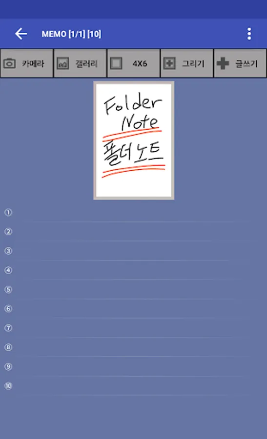 5. When changing your device, all you have to do is to copy "[Internal Memory]/FolderNote" in old device to "[Internal Memory]/FolderNote" in new device.
