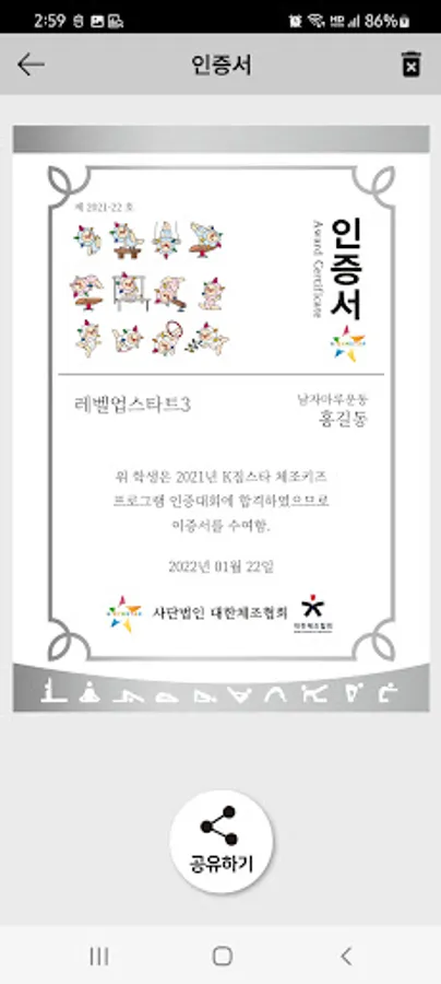 You can check the issued certificate as contest participation information and save, share, or print the certificate.